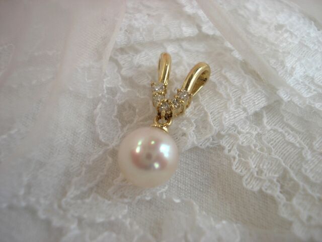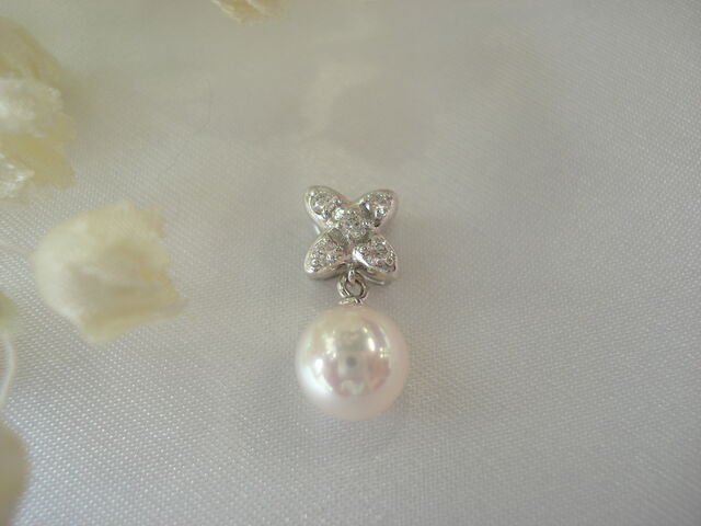 アコヤ真珠に上品な花形のモチーフのペンダントトップを合わせたもの