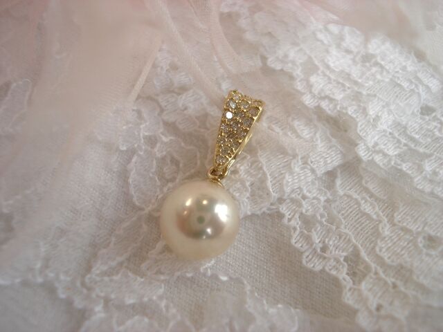 こちらはアコヤ真珠で18金ゴールドに真珠を散りばめたトップを合わせています