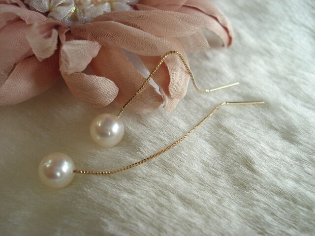 シンプルなあこや真珠のネックレスや淡水真珠のネックレスで、お揃いのピアスを