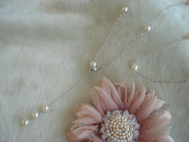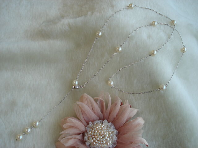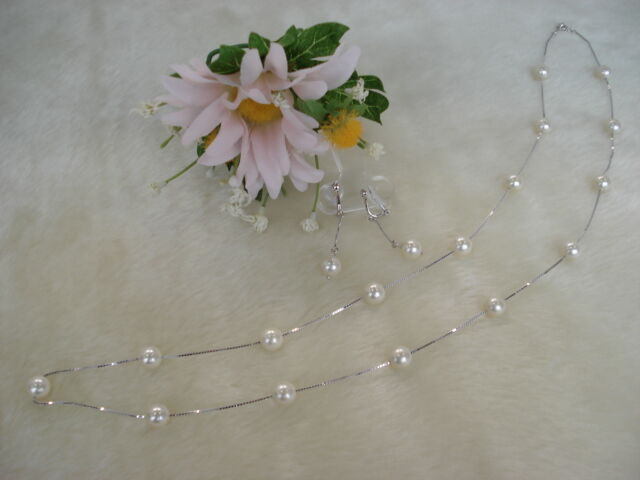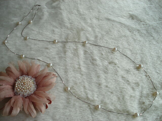 まずは、シルバーのベネシャンチェーン70㎝にアコヤ真珠16個を使用したものと、
