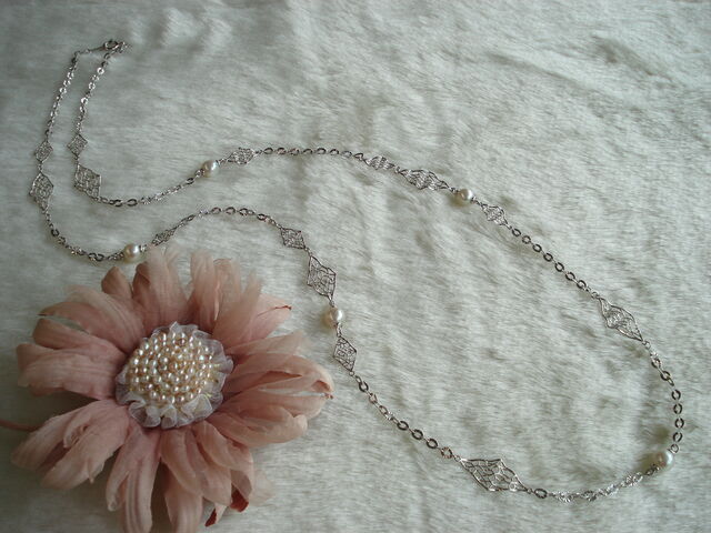 淡い色使いの可愛らしいステーションネックレスですが、甘めなので