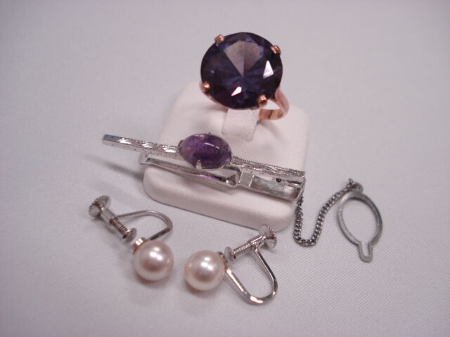 お父様のタイバーのアメジストとお母様のリングの石がとても素敵に合わさり