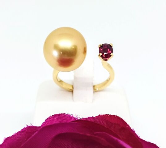 お持ちでいらっしゃるルビーのリングと弊社の真珠を使って、フォークリングに
