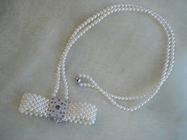 100㎝ほどあるアコヤ真珠のロングネックレスは2連に巻いて着けても素敵なのですが、