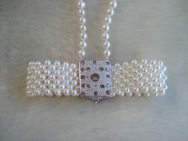 さて本日は、お客様がお持ちのブラウンダイヤを使って、真珠のリボンのネックレス